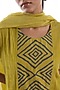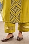 Featuring a lime kurta in cotton muslin base with pintuck details, geometric discharge print and thread embroidery. It is paired with pants and a dupatta. Style it with dangler earrings and sandals for a complete look.