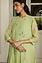 Featuring a lime kurta in muslin cotton base with thread and floral embroidery. It is paired with pants. Accentuate it with statement jewellery and heels for a festive occasion or pooja ceremony.