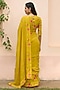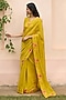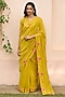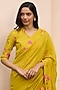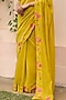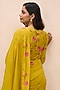 Featuring a marigold saree in muslin cotton base with embroidery. It is paired with an unstitched blouse. Accentuate it with statement jewellery and heels for a wedding or sangeet ceremony.