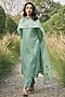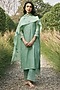 Featuring a mint kurta in muslin cotton base with floral embroidery. It is paired with pants and an embroidered dupatta. Accentuate it with earrings and heels for festive occasions.