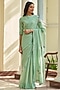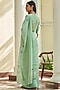 Featuring a mint saree in muslin cotton base with floral thread embroidery. It is paired with a printed unstitched blouse fabric. Accentuate it with a blouse, statement jewellery and heels for a sangeet or wedding ceremony.