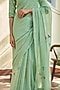 Mint Muslin Cotton Floral Embroidered Saree Set