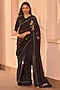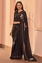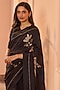 Featuring a noir saree in muslin cotton base with embroidery. It is paired with an unstitched blouse. Accentuate it with statement jewellery and heels for a wedding or sangeet ceremony.