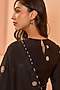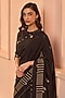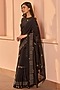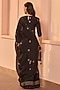 Featuring a noir saree in muslin cotton base with print and embroidery. It is paired with an unstitched blouse. Accentuate it with statement jewellery and heels for a wedding or sangeet ceremony.