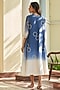 Ocean Blue Muslin Cotton Dual-Tone Printed Jacket Dress