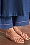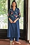 Featuring an ocean blue kurta in muslin cotton base with floral applique detail. It is paired with pants. Pair it with dangler earrings, a clutch, and pair of juttis for a festive occasion or pooja ceremony.