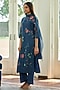 Ocean Blue Muslin Cotton Floral Applique Kurta Set