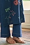 Featuring an ocean blue kurta in muslin cotton base with floral applique detail. It is paired with pants and a dupatta. Pair it with dangler earrings, a clutch, and pair of juttis for a festive occasion or pooja ceremony.