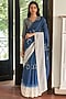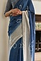 Ocean Blue Muslin Cotton Floral Printed Saree Set