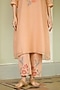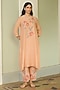 Featuring a peach kurta in muslin cotton base with floral applique embroidery. It is paired with pants. Style it with statement earrings and block heels, perfect for festive occasions.