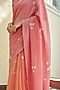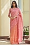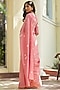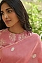 Featuring a peony pink ombre saree in muslin cotton base with print. It is paired with a printed unstitched blouse. Accentuate it with a blouse, statement jewellery and heels for a sangeet or wedding ceremony.