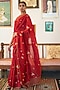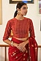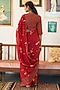 Poppy Red Muslin Cotton Abstract Floral Printed Saree Set