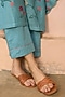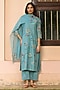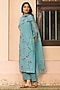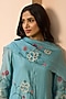 Featuring a powder blue kurta in muslin cotton base with applique embroidery. It is paired with pants and a dupatta. Accentuate it with dangler earrings and heels for a festive look, cultural event or pooja ceremony.