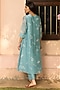 Featuring a powder blue kurta in muslin cotton base with applique embroidery and print. It is paired with pants. Accentuate it with dangler earrings and heels for a festive look, cultural event or pooja ceremony.