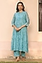Featuring a powder blue kurta in muslin cotton base with floral embroidery. It is paired with pants. Accentuate it with dangler earrings and heels for a festive look, cultural event or pooja ceremony.