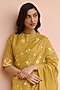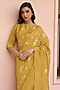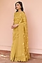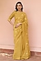 Featuring a rue-colored saree in muslin cotton base with embroidered. It is paired with an unstitched blouse. Accentuate it with statement jewellery and heels for a wedding or sangeet ceremony.