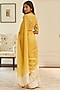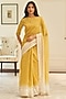 Featuring a rue-colored ombre saree in muslin cotton base. It is paired with a printed unstitched blouse fabric having threadwork. Accentuate it with a blouse, statement jewellery and heels for a sangeet or wedding ceremony.
