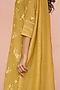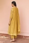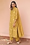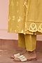 Featuring a rue yellow kurta in muslin cotton base with threadwork and embroidery. It is paired with pants and a dupatta. Accentuate it with dangler earrings and heels for a festive look, cultural event or pooja ceremony.