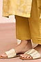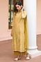 Featuring a rue yellow kurta in muslin cotton base with kantha embroidery and print. It is paired with pants and a dupatta. Accentuate it with dangler earrings and heels for a festive look, cultural event or pooja ceremony.