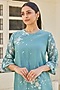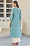Featuring a sky blue kurta in cotton muslin base with floral print. It is paired with contrasting pants having print and thread embroidery.