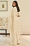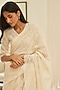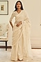 Featuring a swan-colored saree in muslin cotton base with floral embroidery. It is paired with an unstitched blouse fabric having floral motif embroidery. Accentuate it with a blouse, statement jewellery and heels for a sangeet or wedding ceremony.