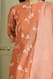 Featuring a tangerine kurta in muslin cotton base with thread embroidery. It is paired with pants and a dupatta. Style it with statement earrings and block heels, perfect for festive occasions.