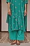 Featuring a teal kurta in muslin cotton base with thread and applique embroidery. It is paired with pants and a dupatta. Style it with oxidized jewelry and juttis for ethnic look. Perfect for festive gatherings, cultural events, family celebrations, and daytime functions.