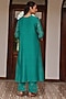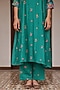 Featuring a teal kurta in muslin cotton base with embroidery and printed cuffs. It is paired with pants. Style it with oxidized jewelry and juttis for ethnic look. Perfect for festive gatherings, cultural events, family celebrations, and daytime functions.