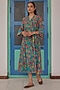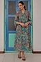 Featuring a teal midi dress in muslin cotton base with floral print. Style it with statement earrings, soft curls and block heels, perfect for evening soirees.