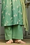 Featuring a verdant-colored kurta in muslin cotton base with floral and thread embroidery. It is paired with pants and a dupatta. Style it with statement earrings and block heels, perfect for festive occasions.