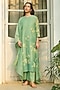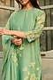 Featuring a verdant-colored kurta in muslin cotton base with applique embroidery. It is paired with pants and a dupatta. Style it with statement earrings and block heels, perfect for festive occasions.
