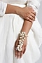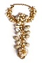 Featuring a 22 Kt gold plated hand embroidered hath phool studded with pearls, beads, and seashells, set in brass.