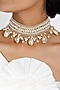 Featuring a 22 Kt gold plated choker necklace studded with pearls, beads and gold chains, set in brass.