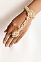 Featuring a 22Kt gold plated haathphool studded with shells, beads, and pearls, set in brass. Ideal for wedding ceremonies or festive occasions.