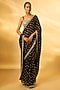 Featuring a black pre-draped saree in chinon chiffon base with mirror and sequins embroidery. It is paired with an embroidered blouse. Accentuate it with diamond jewellery and heels for a festive occasion, cultural event, wedding or engagement ceremony.