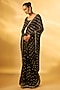 Featuring a black pre-draped saree in chinon chiffon base with mirror lace and sequins embroidery. It is paired with an embroidered blouse. Accentuate it with diamond jewellery and heels for a festive occasion, cultural event, wedding or engagement ceremony.