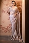 Featuring a champagne saree in tissue base. It is paired with a blouse having a deep neckline, kundan, pearl and diamond hand embellishment. Accentuate it with statement earrings and heels, perfect for weddings, receptions and festive occasions.