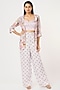 Featuring a lilac shirt in crepe base with aari hand embroidery and floral print. It is paired with matching linen satin palazzo pants and a bustier.