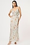 Featuring a mint green dress in satin base with floral print and cut-out detailing.