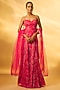 Featuring a pink top in chiffon base with paisley print and sequins embroidery. It is paired with printed skirt and a net dupatta. Accentuate it with diamond jewellery and heels for a festive occasion, cultural event or sangeet ceremony.