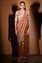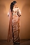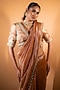 Featuring a rose gold saree in silk and tissue base with mirror, beads, sequins and zardosi embroidery. It is paired with a blouse having floral motifs work. Accentuate it with statement earrings and heels, perfect for weddings, receptions and festive occasions.