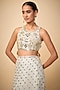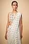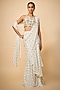 Featuring a white draped saree in chinon base with sequins embroidery. It is paired with a blouse having mirror embroidery. Style it with statement earrings and block heels for a cocktail, sangeet or engagement ceremony.