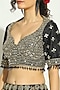 Featuring a black and white lehenga in dupion silk base with mirror and gota patti work. It is paired with a blouse and a net-scalloped dupatta. Accentuate it with statement earrings and heels for a bridal look.
