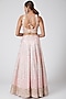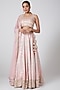 Featuring a blush pink lehenga in chanderi base with mirror embroidery. It is paired with a matching blouse and dupatta.