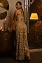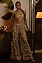 Featuring a gold blouse in net base with spaghetti straps. It is paired with sequins work sharara pants and a dupatta. Accentuate it with statement earrings, a sleek low bun, and metallic heels for a dramatic ensemble, ideal for sangeet nights or glamorous celebrations.