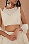 Featuring an ivory lehenga in chikankari base with pearl work. It is paired with a sleeveless blouse and net dupatta having pearl lace border. Accessorize this bridal lehenga with diamond jewellery and heels for a sangeet look.