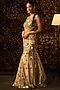 Featuring an ivory fish-cut lehenga in shimmer raw silk base with mirror work. It is paired with a blouse and a dupatta. Accentuate it with statement earrings, a sleek low bun, and metallic heels for a dramatic ensemble, ideal for sangeet nights or glamorous celebrations.