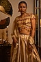 Featuring an ivory lehenga in shimmer raw silk base with thread and mirror work. It is paired with a blouse and a dupatta. Accentuate it with statement earrings, a sleek low bun, and metallic heels for a dramatic ensemble, ideal for sangeet nights or glamorous celebrations.