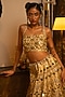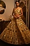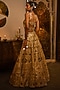 Featuring an ivory lehenga in shimmer raw silk base with mirror work. It is paired with a blouse and a dupatta. Accentuate it with statement earrings, a sleek low bun, and metallic heels for a dramatic ensemble, ideal for sangeet nights or glamorous celebrations.