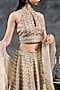 Featuring an ivory lehenga in shimmer raw silk base with sequins work. It is paired with a blouse having a high neck cut detail and a dupatta. Accentuate it with statement earrings, a clutch and block heels for weddings or sangeet ceremonies.